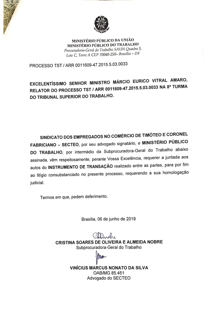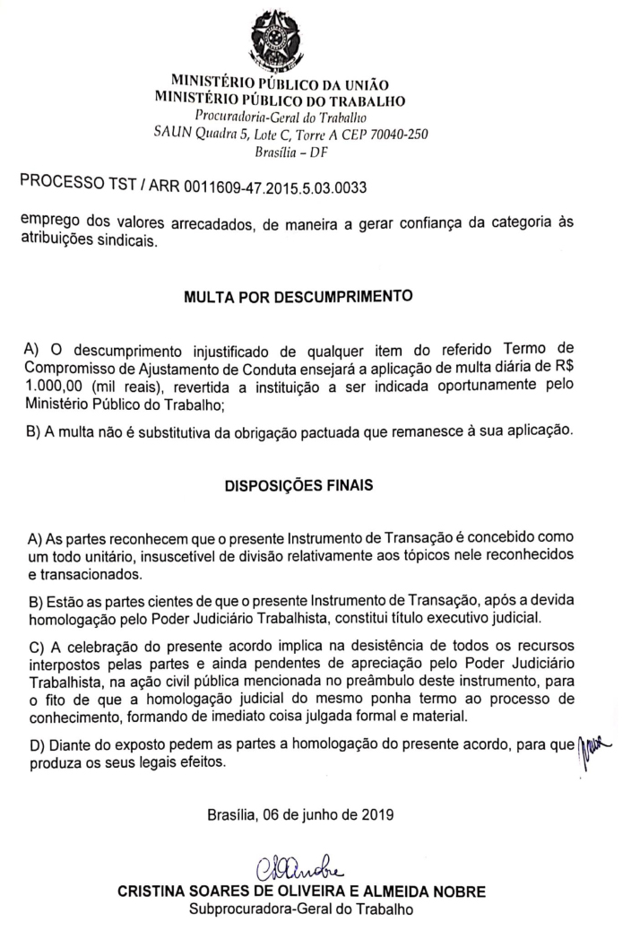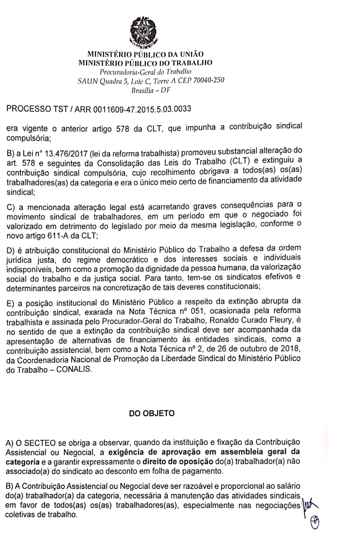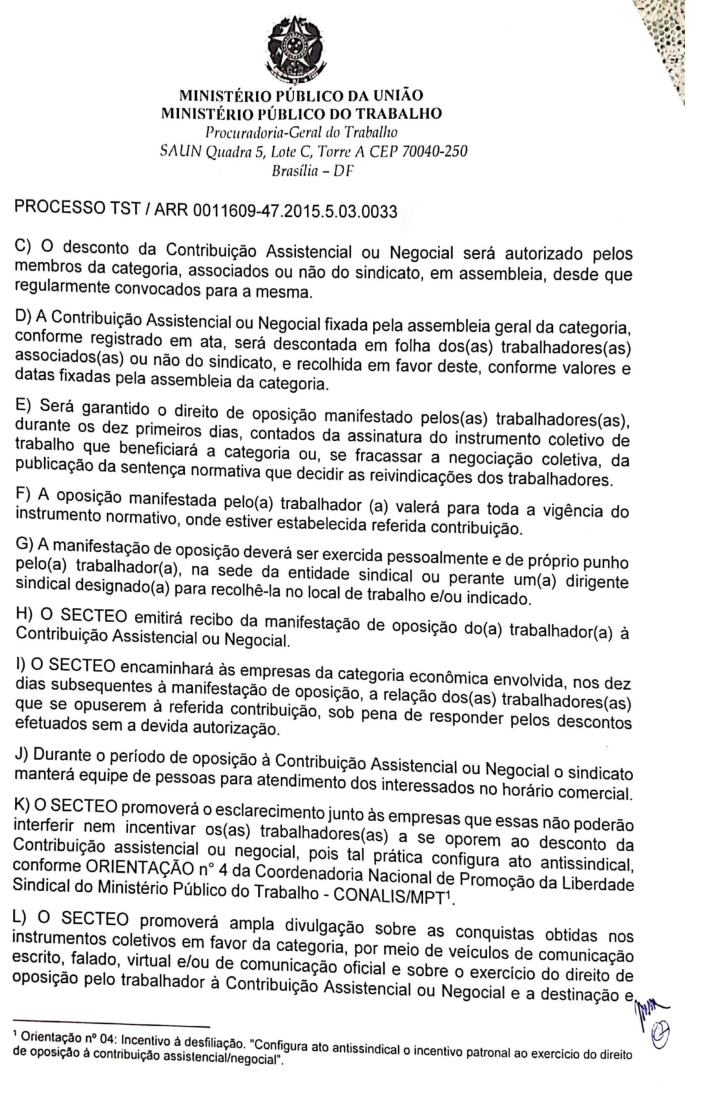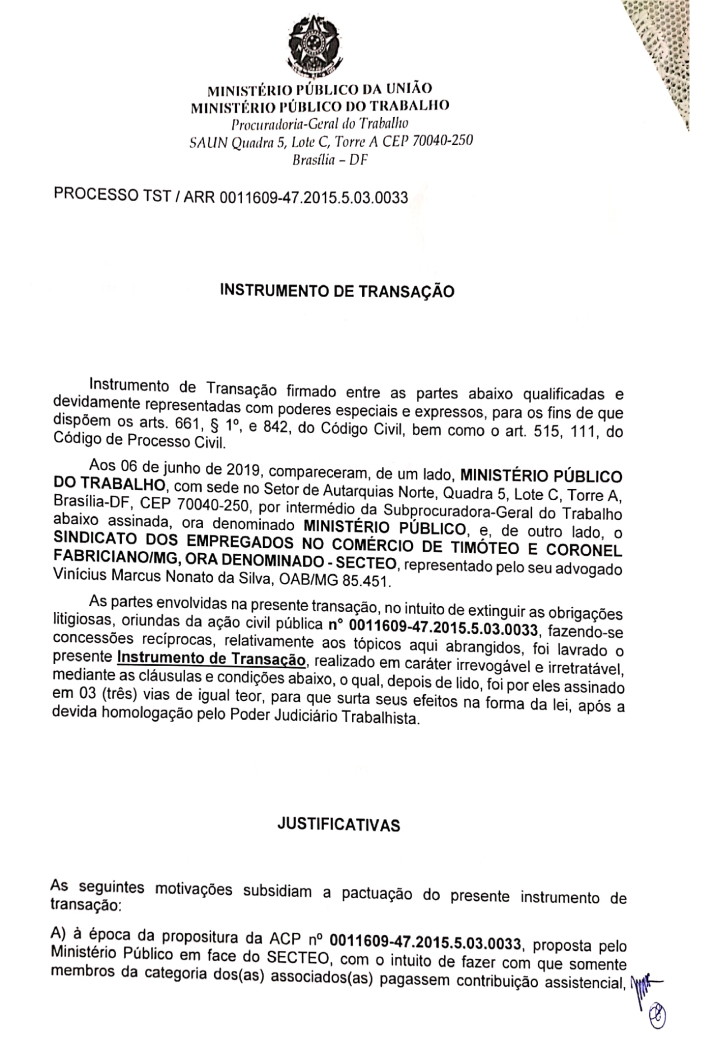 TST HOMOLOGA ACORDO QUE POSSIBILITA DESCONTO DE CONTRIBUIÇÃO AO SECTEO-CF